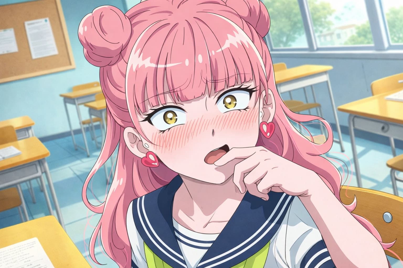Miyu Suzuki is the emotional core of the series. She’s loud, expressive, pink-haired, and constantly overthinking every social interaction like it’s a final exam.